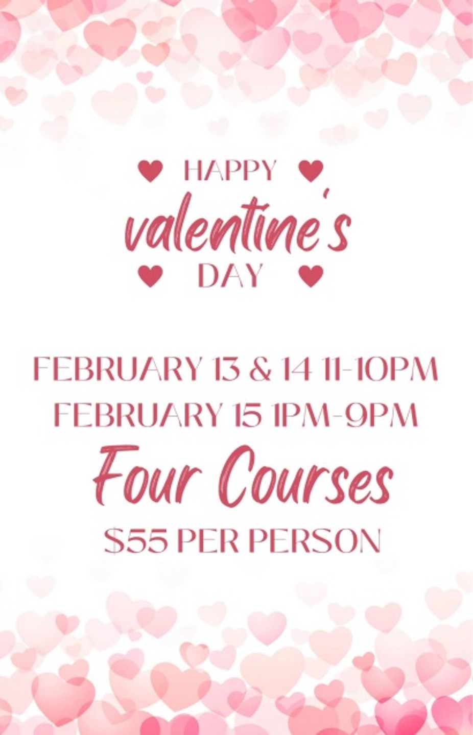 Four Course Valentines Dinner $55: 14 Options to make your romantic weekend perfect!