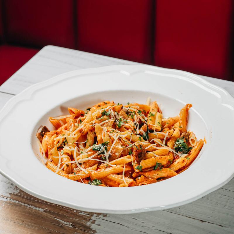 Al dente penne pasta tossed in a rich and creamy tomato vodka sauce, blending the perfect balance of tangy, savory, and smooth flavors. A comforting classic with a sophisticated twist.