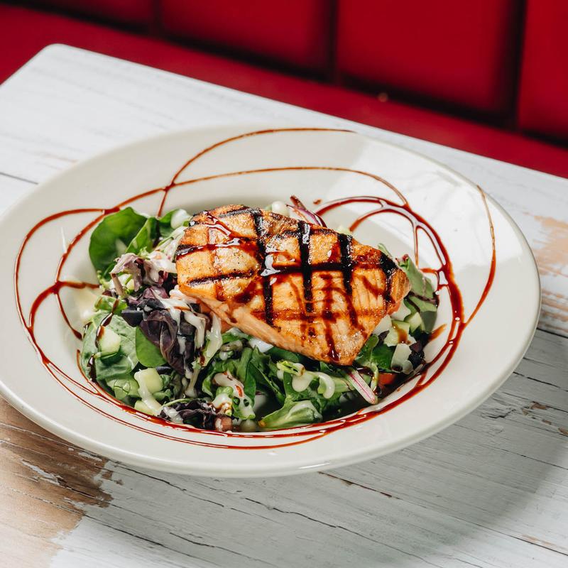 Tender grilled chicken atop a bed of fresh mixed greens, paired with juicy sliced strawberries, creamy goat cheese, and finished with our house-made dressing. A light and refreshing salad with a perfect balance of savory and sweet.
