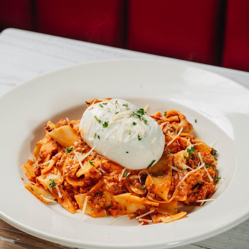 Six decadent layers of tender pasta, ricotta, mozzarella, creamy béchamel, and our rich three-meat Bolognese sauce. Baked to perfection for a melty, satisfying bite with every forkful.